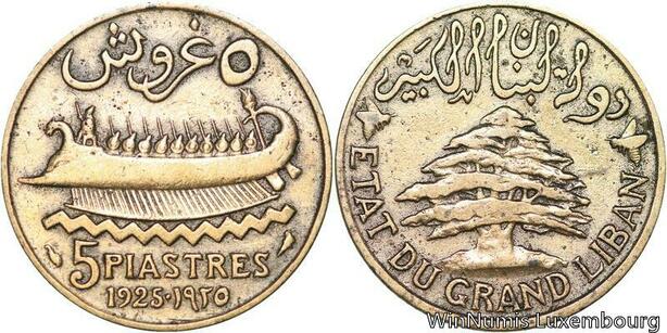 R4039 Lebanon 5 Piastres Cedar tree 1925 (a) Paris -> Make offer