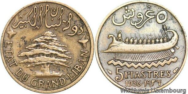 R4046 Lebanon 5 Piastres Cedar tree 1936 (a) Paris -> Make offer