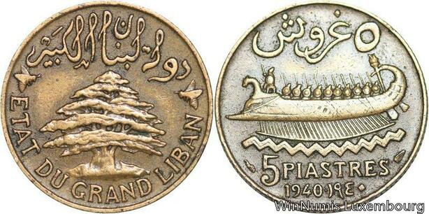 R4047 Lebanon 5 Piastres Cedar tree 1940 (a) Paris -> Make offer