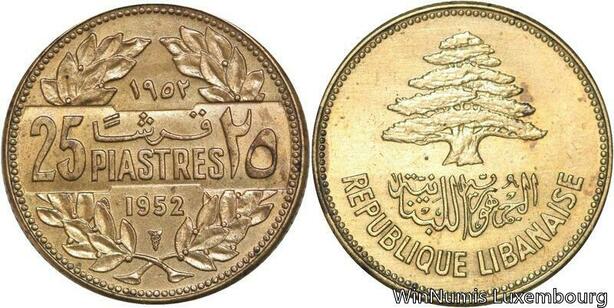 R4051 Lebanon 25 Piastres Cedar tree 1952 AU -> Make offer