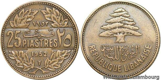 R4053 Lebanon 25 Piastres Cedar tree 1952 -> Make offer