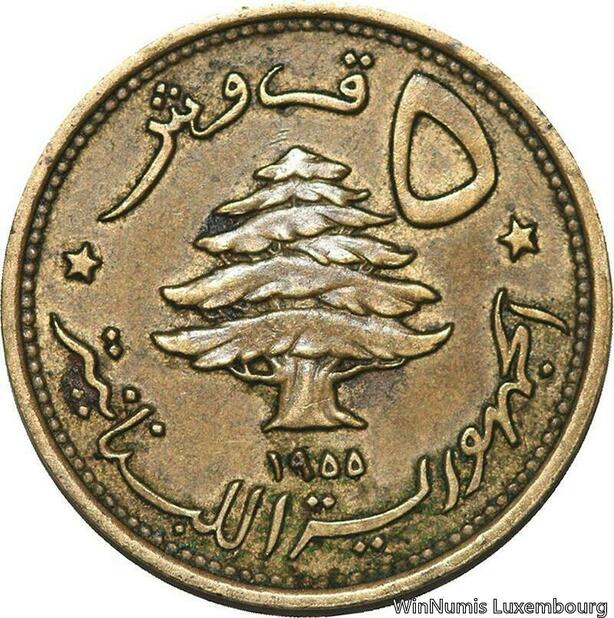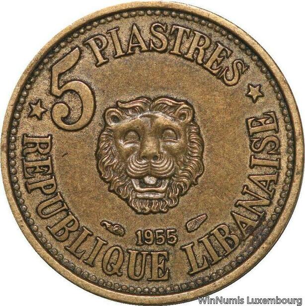 R4075 Lebanon 5 Piastres Cedar Tree Lion 1955 (a) Paris AU -> Make offer