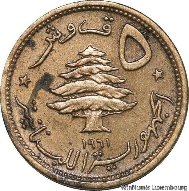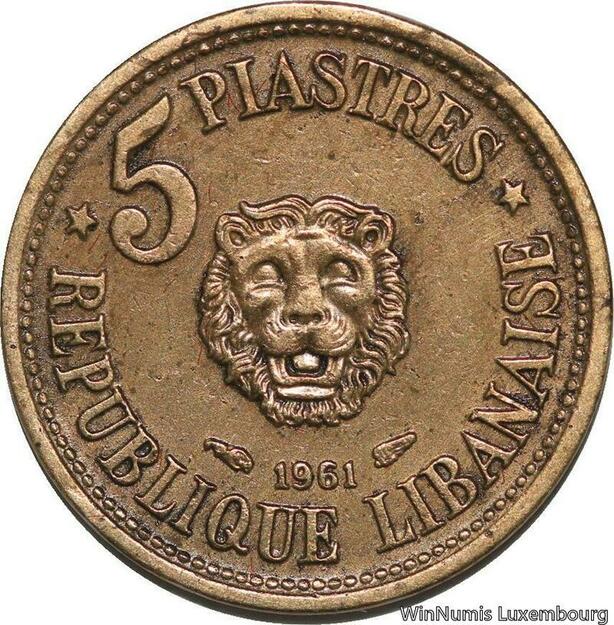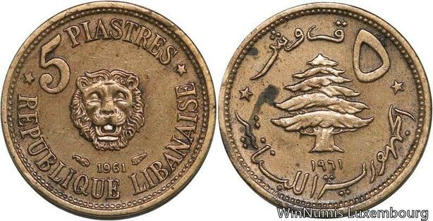 R4077 Lebanon 5 Piastres Cedar Tree Lion 1961 (a) Paris AU -> Make offer
