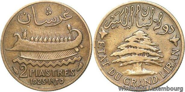 R4088 Lebanon 2 Piastres Boat Cedar Tree 1925 (a) Paris -> Make offer