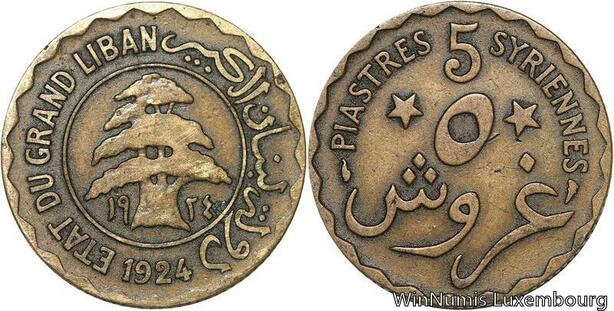R4101 Lebanon 5 Piastres Syriennes Cedar Tree 1924 (a) -> Make offer