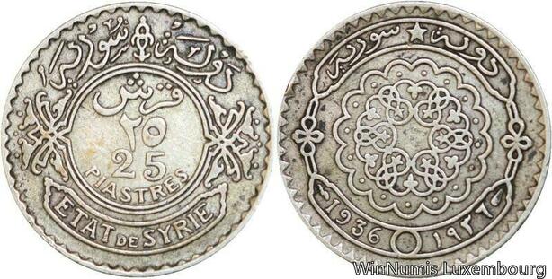 R4137 Syria 25 Piastres Etat de Syrie 1936 (a) Paris Silver -> Make offer