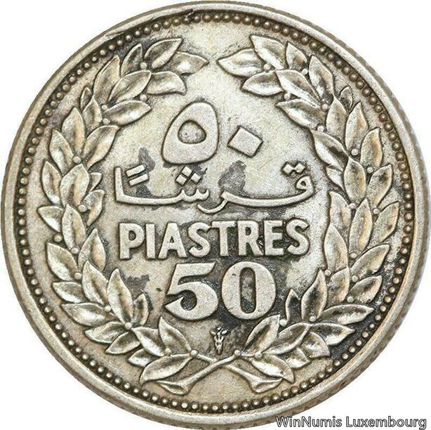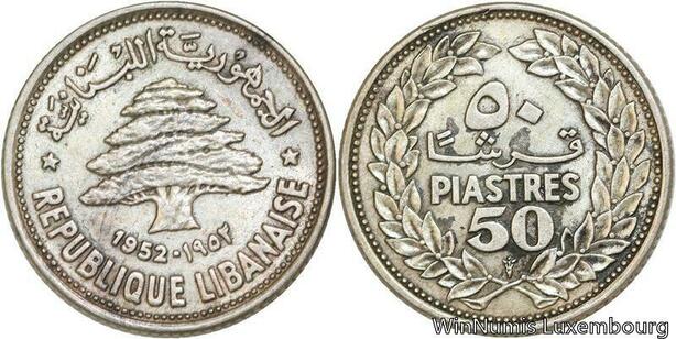 R4138 Lebanon 50 Piastres République Libanaise Cedar Tree 1952 Silver -> M offer