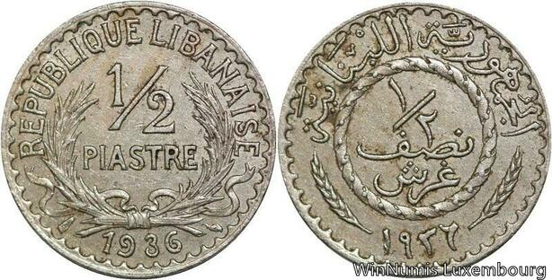 R4198 Lebanon Liban 1/2 Piastre 1936 (a) Paris -> Make offer