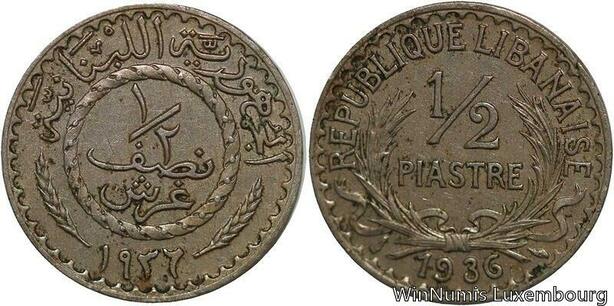 R4211 Lebanon Liban 1/2 Piastre 1936 (a) Paris AU -> Make offer