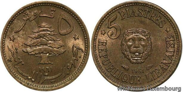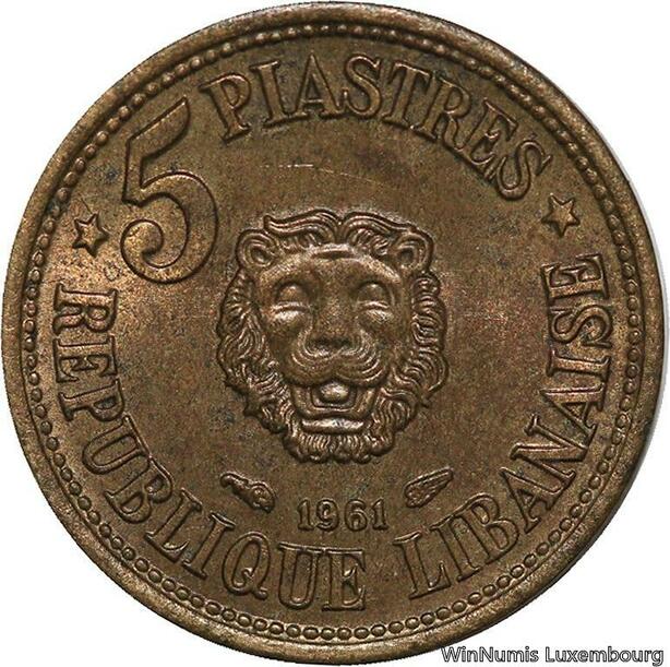 R4212 Lebanon 5 Piastres Lion 1961 (a) Paris UNC -> Make offer
