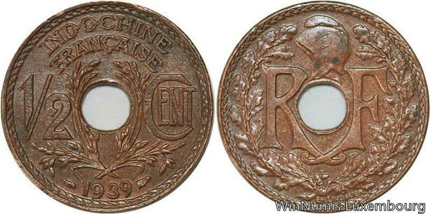 R4337 French Indochina 1/2 Cent 1939 (a) Paris AU -> Make offer