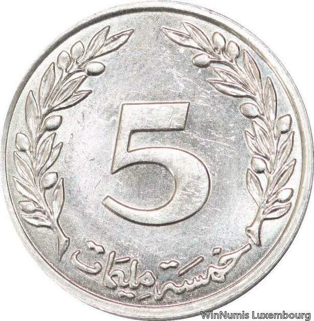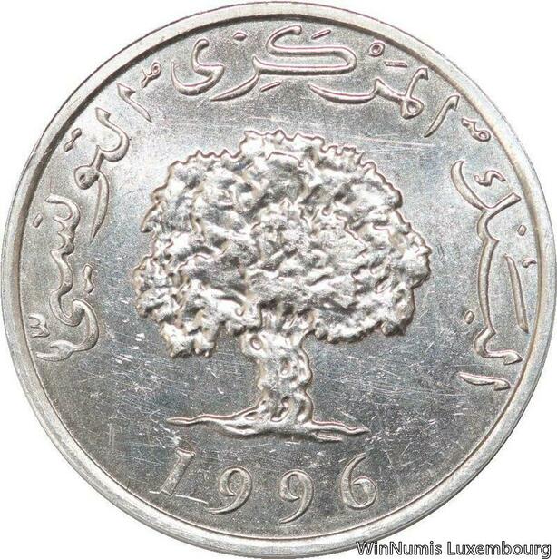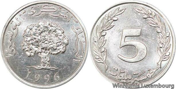 R4346 Tunisia 5 Milliemes Millim Oak tree 1996 UNC