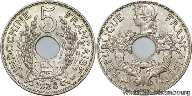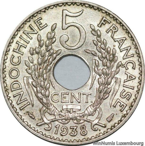 R4360 French Indochina 5 Centièmes 1938 (a) Paris AU+ -> Make offer