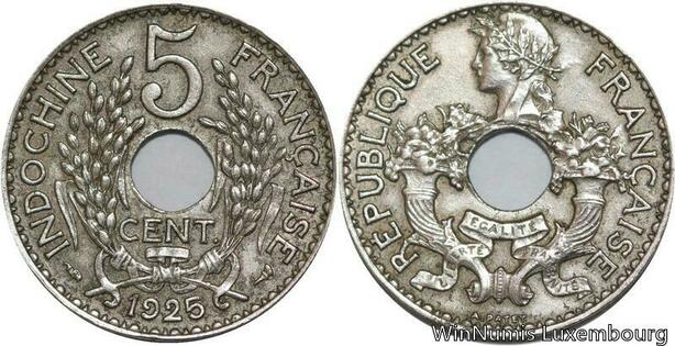 R4365 French Indochina 5 Centimes 1925 (a) Paris AU -> Make offer