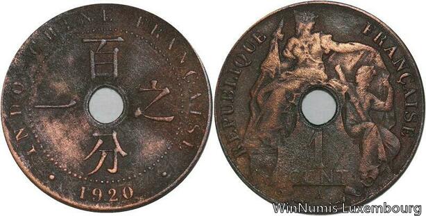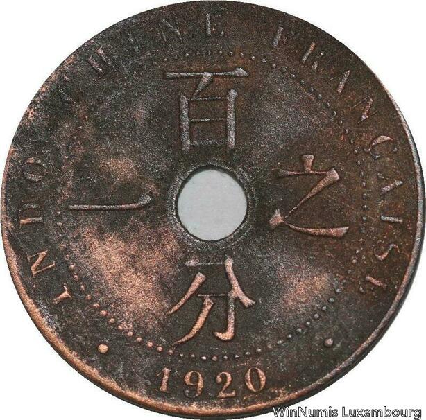R4374 French Indochina Un Centième 1920 A Paris -> Make offer