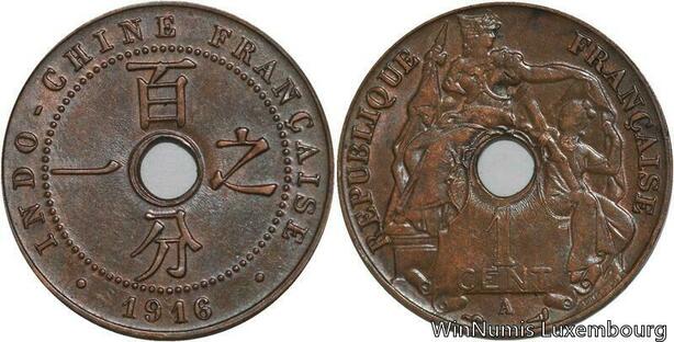 R4377 French Indochina Un Centième 1916 A Paris -> Make offer