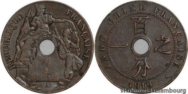 R4382 French Indochina Un Centième 1919 A Paris -> Make offer