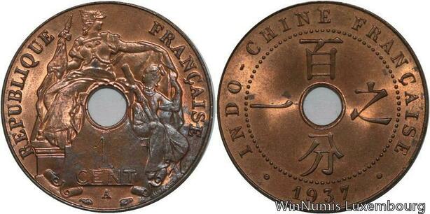 R4384 French Indochina Un Centième 1937 A Paris UNC BU -> Make offer