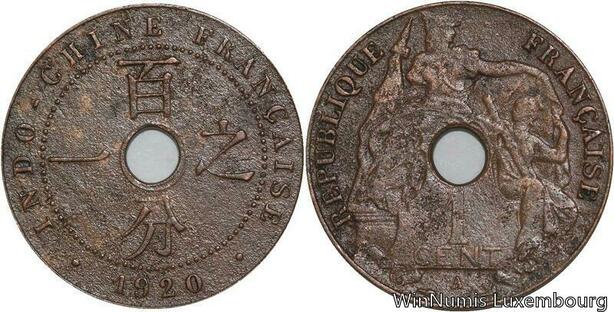 R4392 French Indochina Un Centième 1920 A Paris -> Make offer