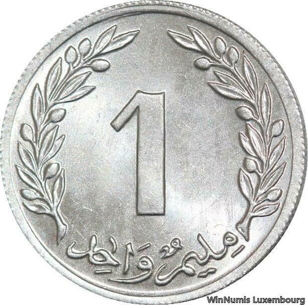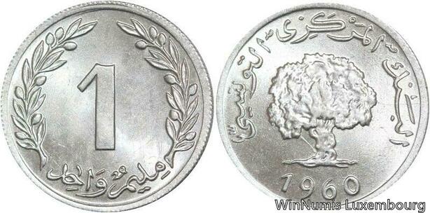 R4397 Tunisia 1 Millieme Millim Oak tree 1960 UNC