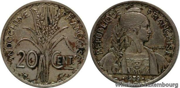 R4418 French Indochina 20 Cents Turin 1939 -> Make offer