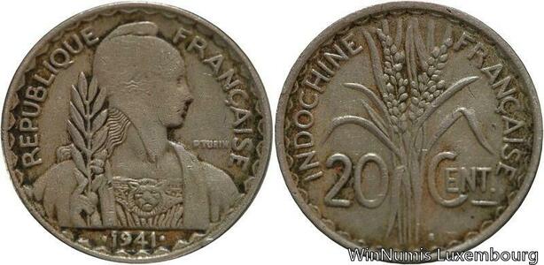R4424 French Indochina 20 Cents Turin 1941 S San Francisco -> Make offer