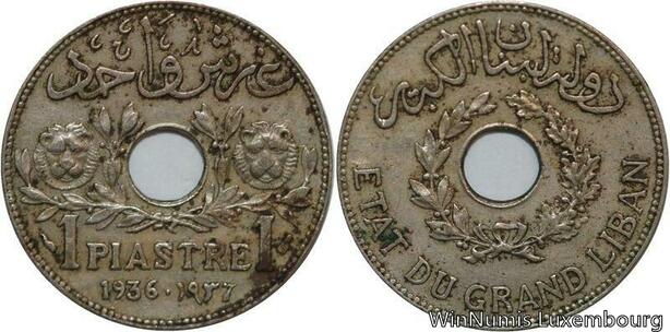R4494 Lebanon 1 Piastre Etat du Grand Liban 1936 (a) Paris -> Make offer