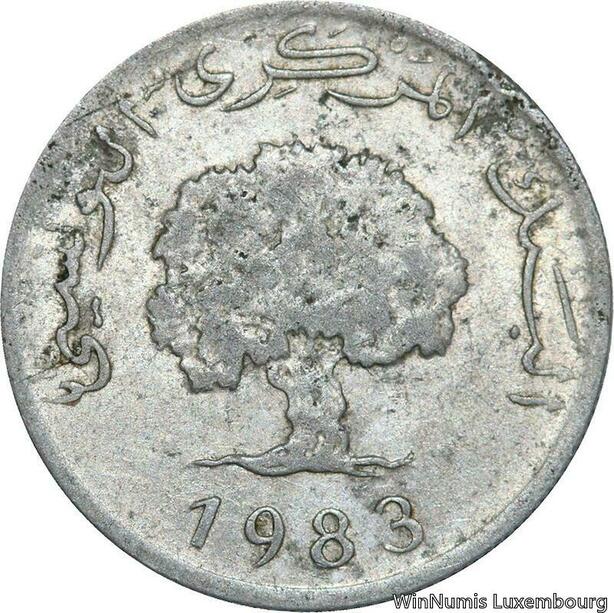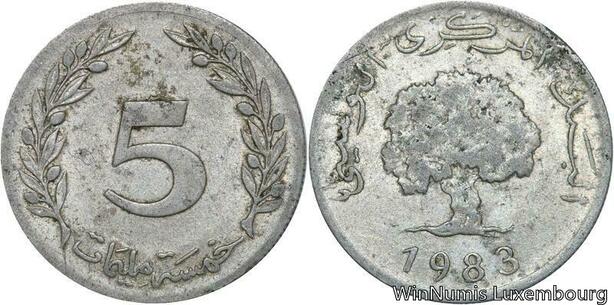 R4610 Tunisia 5 Milliemes Millim Oak tree 1983 -> Make offer