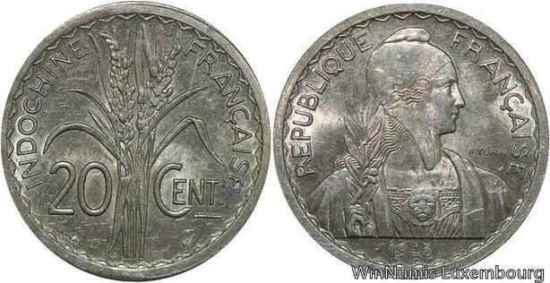 R4624 French Indochina 20 Cents Turin 1945 AU -> Make offer