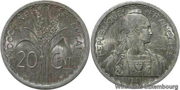 R4626 French Indochina 20 Cents Turin 1945 UNC -> Make offer