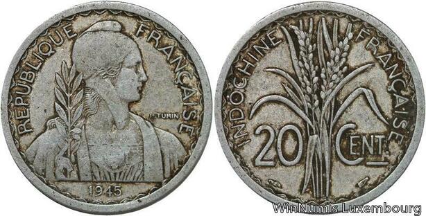 R4628 French Indochina 20 Cents Turin 1945 -> Make offer