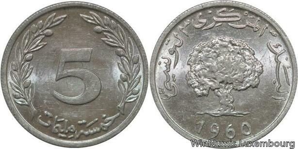 R4636 Tunisia 5 Milliemes 1960 UNC -> Make offer