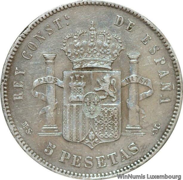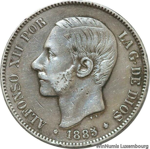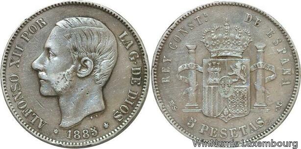 R4637 Rare Spain 5 Pesetas Alfonso XII 1885 (87) MS M Madrid Silver > Make offer