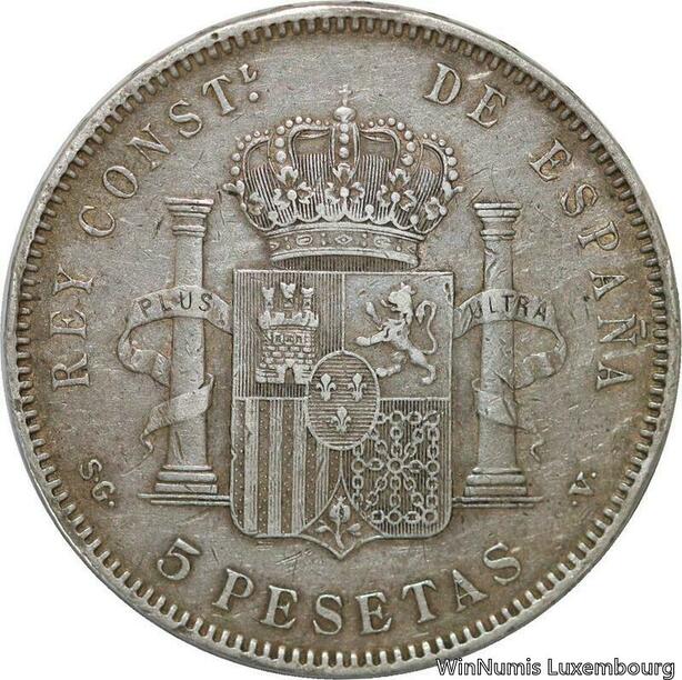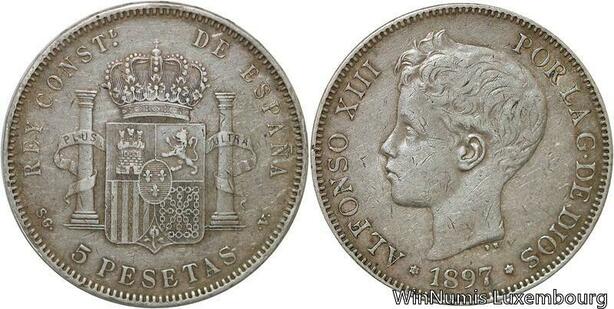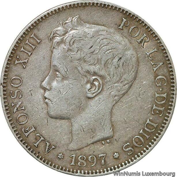 R4642 Spain 5 Pesetas Alfonso XIII 1897 (97) SG V Madrid Silver -> Make offer