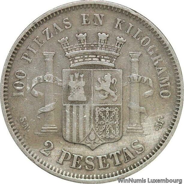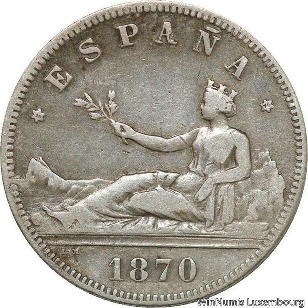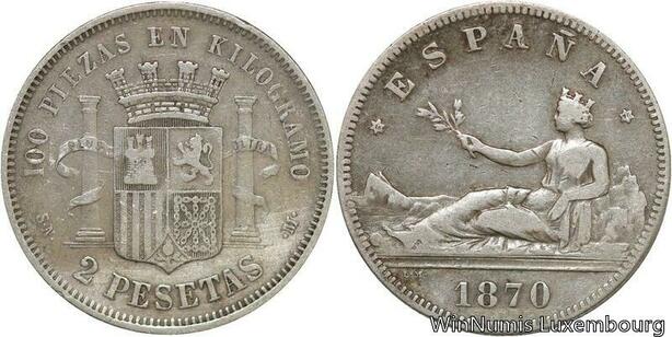 R4645 Spain 2 Pesetas Govertment 1870 (70) SN M Madrid Silver -> Make offer