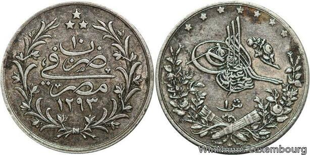 R4677 Egypt 1 Qirsh Abdul Hamid II AH 1293 /10 1884 W Silver AU -> Make offer