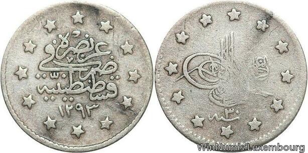 R4679 Ottoman Empire 1 Kurush Abdul Hamid II El-Ghazi AH 1293 /30 1904 Silver