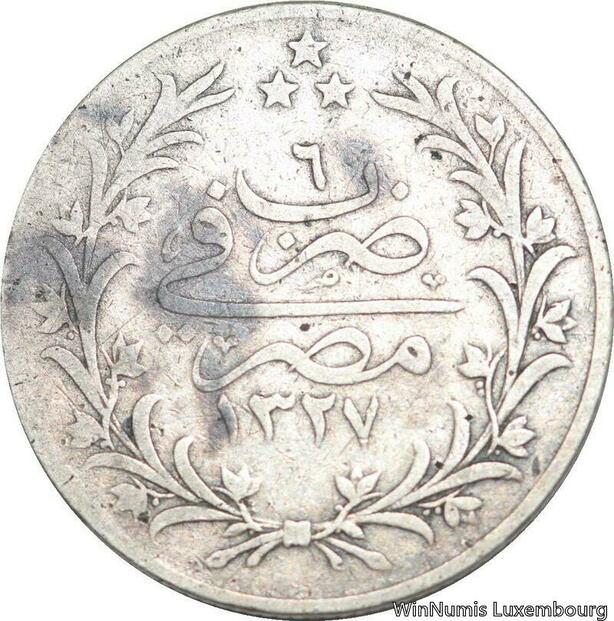 R4692 Egypt 5 Qirsh Muhammad V AH 1327 / 2 1910 H Heaton Silver -> Make offer