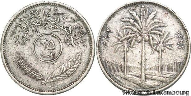 R4696 Irak 25 Fils Saddam Hussein Palm trees AH 1392 1972 ->Make offer