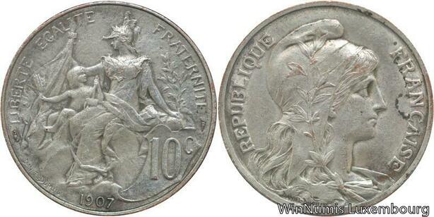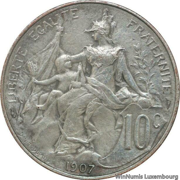 R4740 Rare France 10 Centimes Dupuis 1907 Argentée Silvered SUP -> Make offer