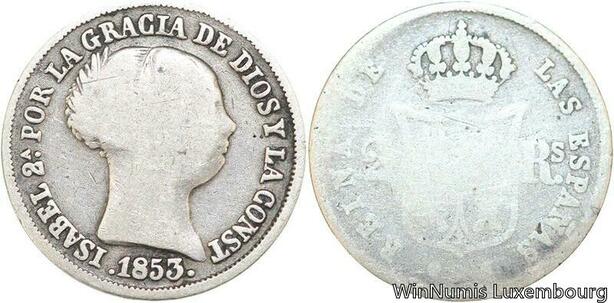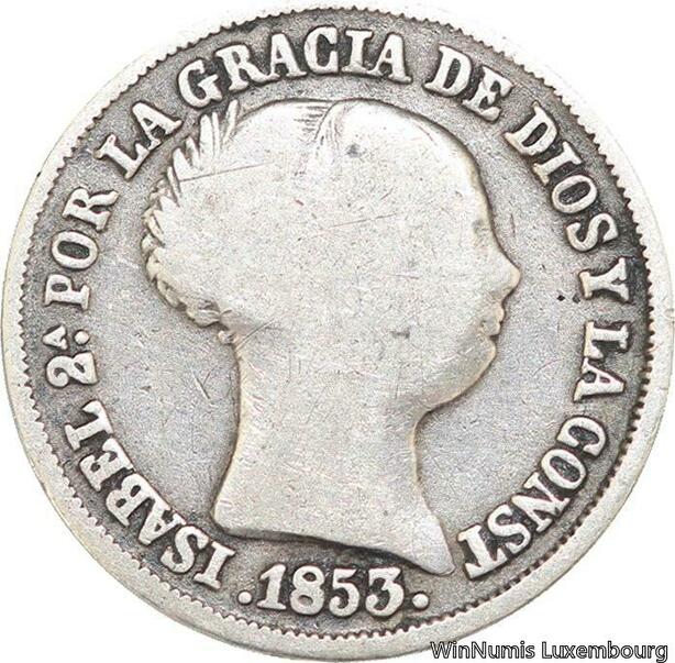 R4751 Spain 2 Reales Isabel II 1853 Madrid 6 pointed star Silver -> Make offer