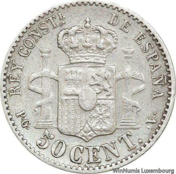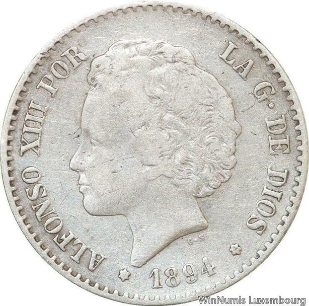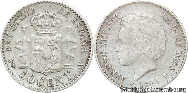 R4757 Spain 50 Centimos Alfonso XIII 1894 (94) PG V Madrid Silver -> Make offer