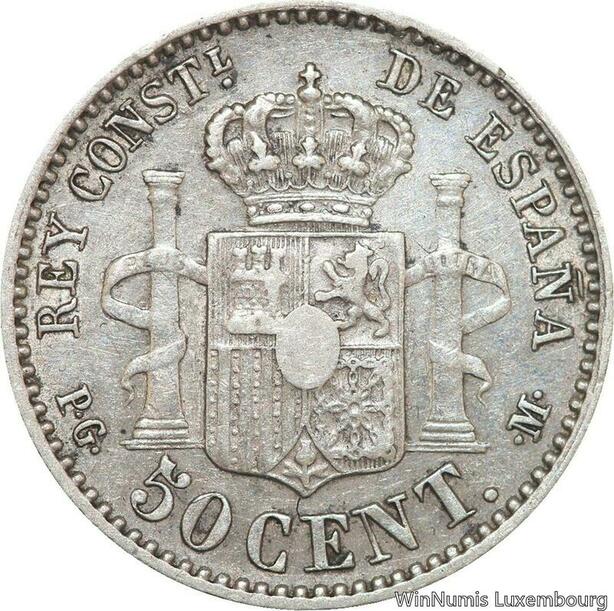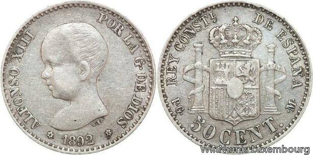 R4758 Spain 50 Centimos Alfonso XIII 1892 (92) PG-M Madrid Silver -> Make offer