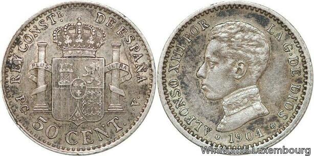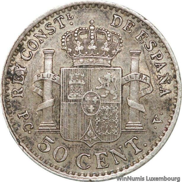 R4761 Spain 50 Centimos Alfonso XIII 1901 (10) PC-V Madrid Silver -> Make offer