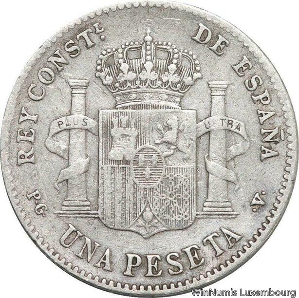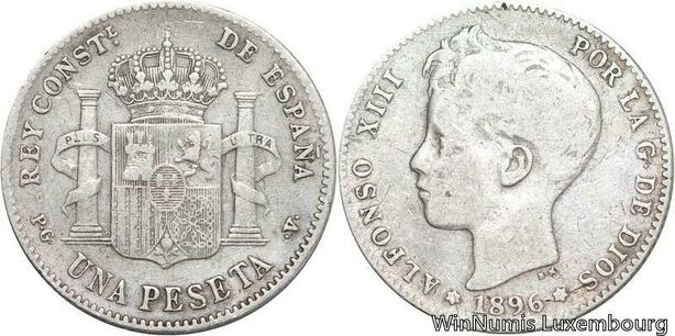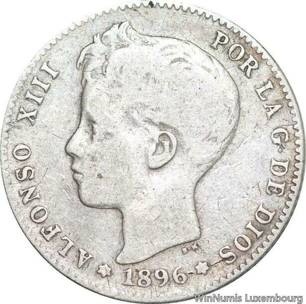 R4768 Spain 1 Peseta Alfonso XIII 1896 (96) PG-V Madrid Silver -> Make offer