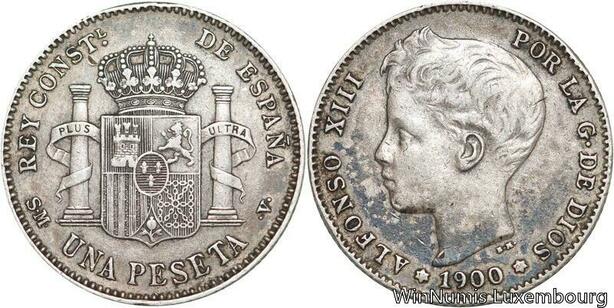 R4769 Spain 1 Peseta Alfonso XIII 1900 (00) SM-V Madrid Silver -> Make offer