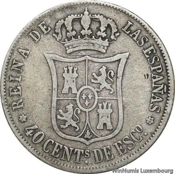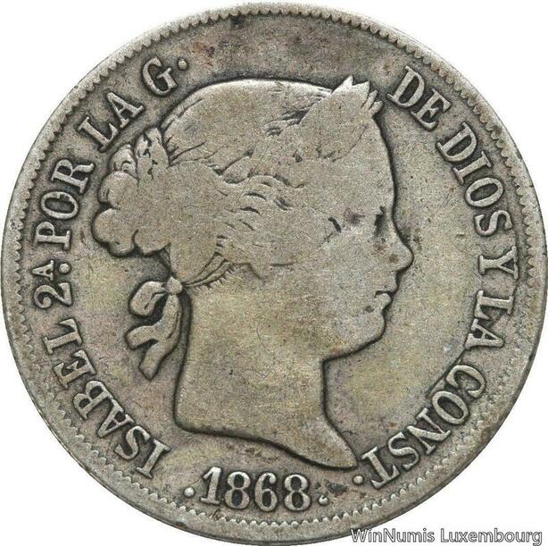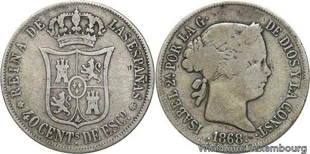 R4772 Spain 40 Centimos Escudo Isabel II 1868 (68) Madrid 6 pointed star Silver