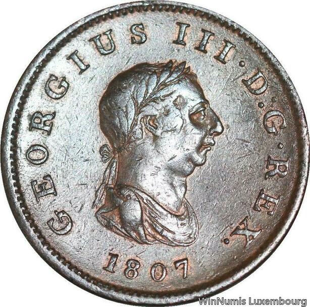 R4809 Rare United Kingdom Half Penny George III 1807 AU -> Make offer