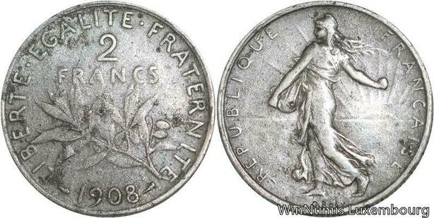 R4845 France Faux époque 2 Francs Semeuse 1908 Plomb -> Make offer