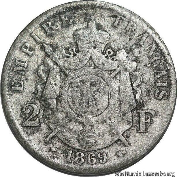 R4851 France Faux époque 2 Francs Napoléon III 1869 A Paris Plomb -> Make offer